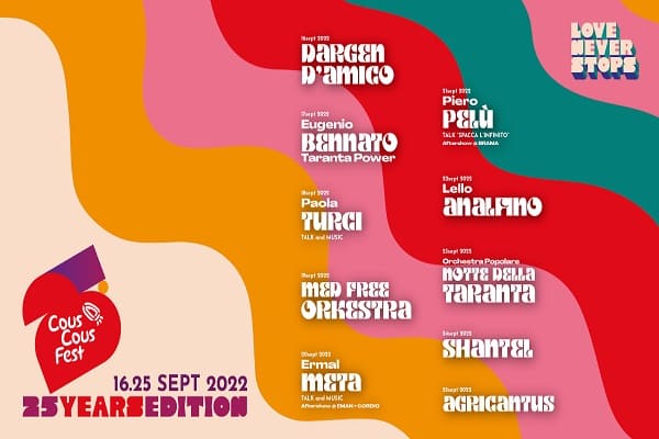 In programma a San Vito Lo Capo (TP) dal 16 al 25 settembre 2022 che quest’anno festeggia il suo venticinquennale. All’insegna dello slogan “Love Never Stops” riunendo come da tradizione paesi e culture diverse per promuovere la pace, lo scambio e la multiculturalità.