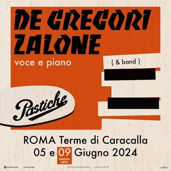 Il 5 e 9 giugno inoltre saranno insieme in un unico concerto alla Terme di Caracalla di Roma intitolato “De Gregori Zalone – Voce e Piano (& Band)”.