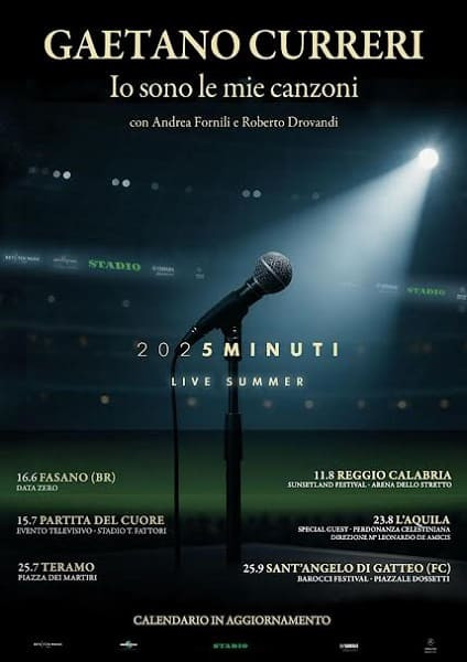 “Io sono le mie canzoni” ripercorre la straordinaria carriera di Gaetano Curreri, tra i più importanti cantautori e compositori della musica italiana. Un viaggio attraverso i suoi successi intramontabili con gli Stadio. Ma anche attraverso le canzoni scritte per alcuni dei più grandi artisti del panorama nazionale.