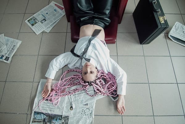 In un’ambientazione asettica e quasi deserta, Namida è costretta a battersi con una poltrona che piano piano le diventa stretta e sempre più scomoda.