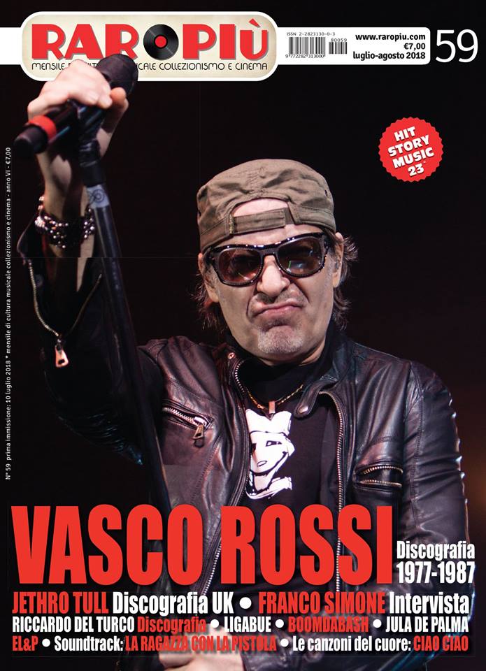 “Raropiù” di luglio-agosto è da oggi disponibile nelle edicole. Un numero caldissimo come questa estate con Vasco e la sua prima produzione discografica dettagliata e quotatissima e tanto altro come Jethro Tull, Franco Simone, Boomdabash con Loredana Berté, Ligabue, Riccardo Del Turco, Jula De Palma, E.L. & P. Monica Vitti in “La ragazza con la pistola”, la canzone del cuore “Ciao ciao,” lo spettacolo dedicato a Mia Martini e tanto altro. Sul sito www.raropiu.con la mappa delle edicole.